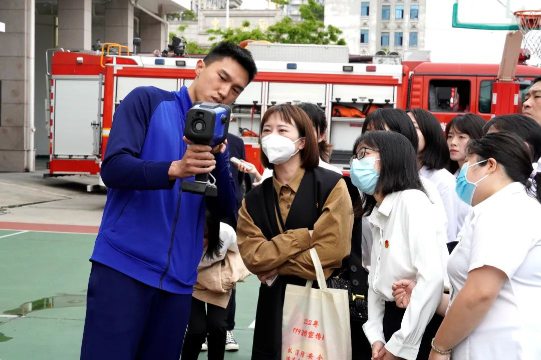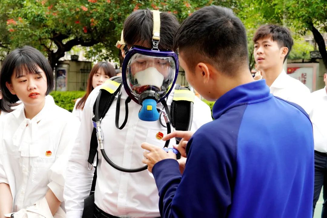 在活动现场,漳州市消防救援支队特勤大队队员通过实物展示、视频演示、现场体验等方式,带领集团团员、青年志愿者深入了解消防车相关知识,并“零距离”体验消防器材、消防常用服装的使用方法,观摩学习救援绳索升降,一对一救援等项目。
