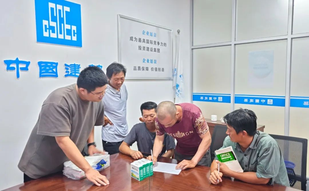 二是加强后勤保障工作,各项目部准备了充足的藿香正气水、冰矿泉水、绿豆汤等消暑物品,每天分批送到施工人员手中,并合理采取喷洒水雾物理降温等方式,全力保障一线作业人员在高温中的施工安全。
