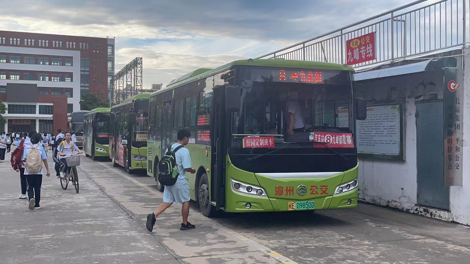 笔者在平和一中校内看到,5辆“定制班车”在客运临时停靠点内一字排开,等候放学的学生。学生们在工作人员的指导下有序上车,一起坐上专属于他们回家的“定制班车”。