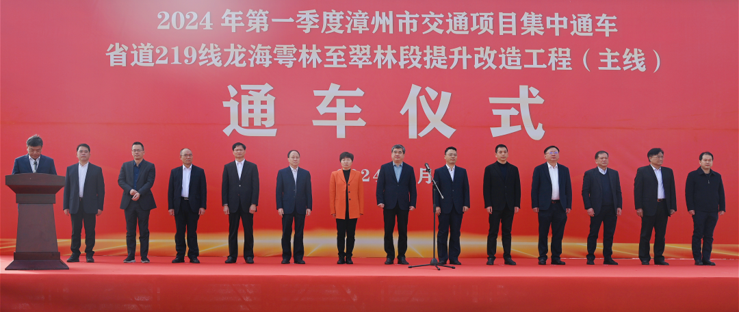 龙海区区委书记黄劲武宣布通车,区政府副区长陈跃洋主持通车仪式并介绍通车项目总体情况,漳州交通集团总工程师陈静明介绍项目建设情况,龙海区委常委、区政府党组副书记张碧兰,漳州市交通运输局副局长黄志勇,漳州市交通运输局、龙海区直有关单位、漳州交通集团、龙海经济开发区、龙海区各乡(镇、街道、场)等单位领导,建设、设计、监理、施工等参建单位代表参加通车仪式。
