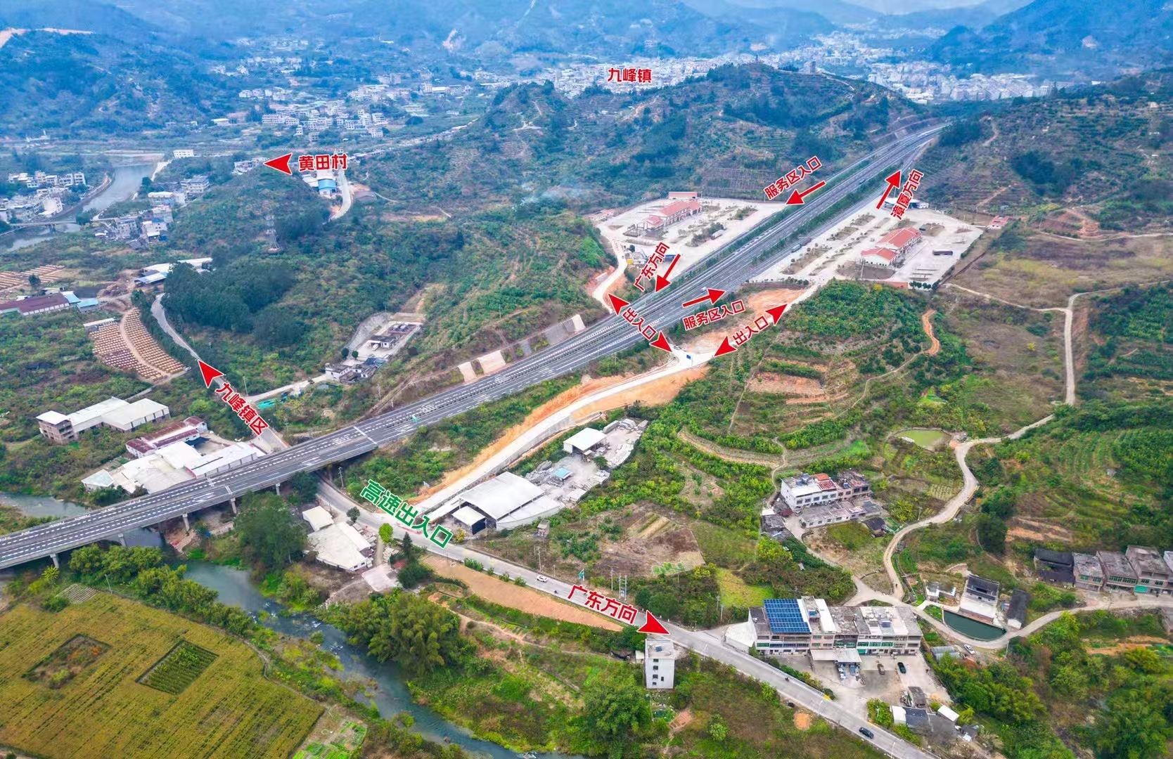 黄田服务区简易出入口项目是贯彻落实省委省政府高度重视的“两通工程”和“为民办实事”2024年度任务项目,位于平和县九峰镇黄田村附近,分别于黄田服务区A、B区设置出入口,共四个收费车道,总投资604万元。